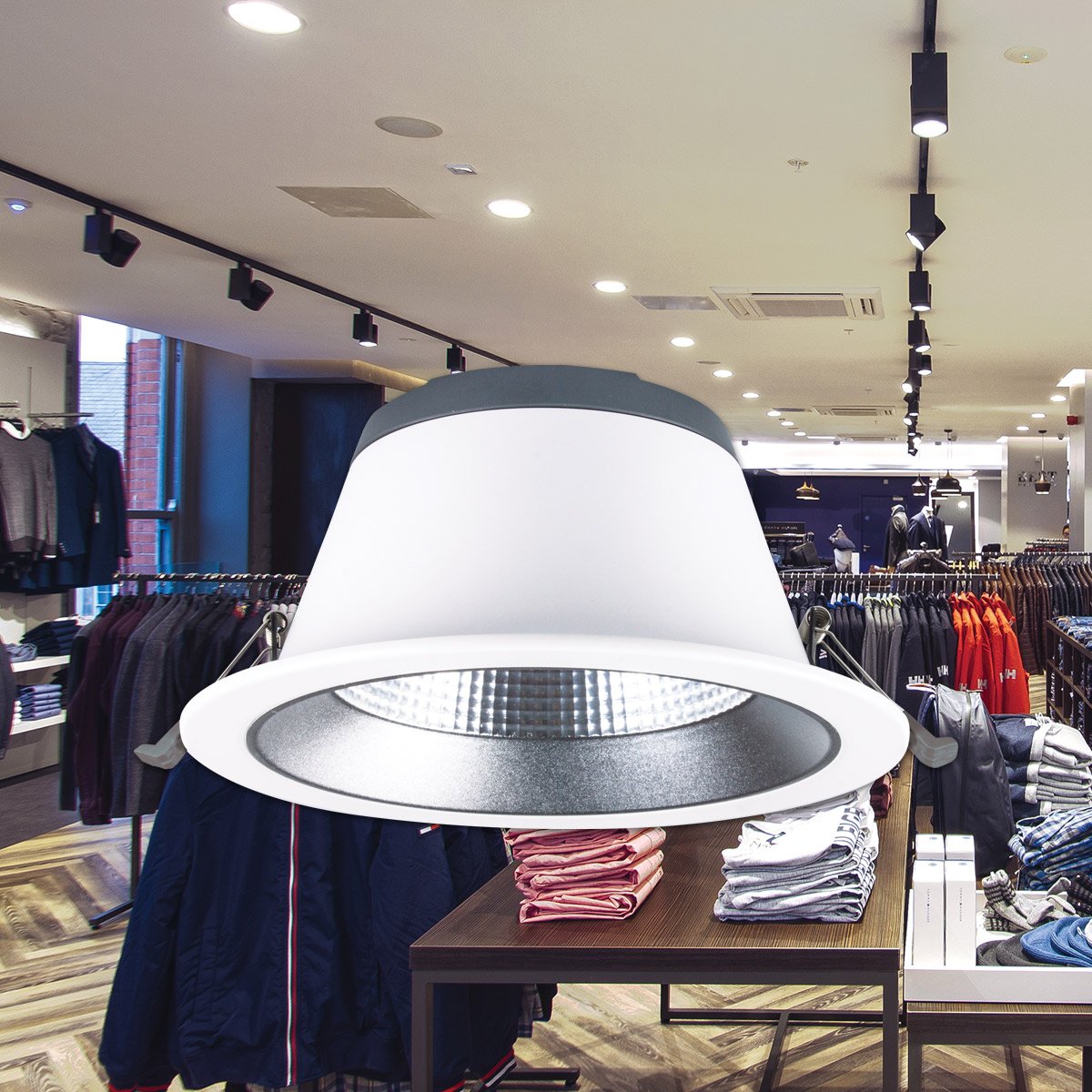 With two wattages, three selectable colour temperatures, and an IP54 protection rating the Genoa multi watt CCT LED downlight is ideal for the vast majority of retail or commercial requirements. The UGR<19 rating gives an excellent quality of light which is free of glare, while the long lifetime ensures that this fitting will shine brightly for years.
